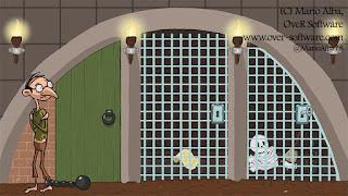 El segundo nivel de Perdiendo los papeles, la aventura gráfica de OveR Software que presentamos a una game jam que buscaba rendir homenaje a Miguel de Cervantes en el 400 aniversario de su muerte, está inspirado tanto en una obra cervantina como en un episodio real de la vida del literato. Por un lado, el escenario de este nivel es la prisión de Argel en la que Cervantes estuvo recluido durante cinco años. Por otro, el personaje al que tiene que ayudar es el Licenciado Vidriera, protagonista de uno de los relatos en las Novelas ejemplares, escritos entre 1590 y 1612, y publicados en una colección en 1613. En El licenciado Vidriera, Cervantes nos presenta a un hombre que cree ser tan frágil que el más mínimo golpe lo hará añicos, con lo que se nos ocurrió ponerlo en la cárcel, de donde está demasiado asustado para escapar. El objetivo del nivel, por tanto, es ayudarlo a huir y, por supuesto, recoger la página perdida del manuscrito.